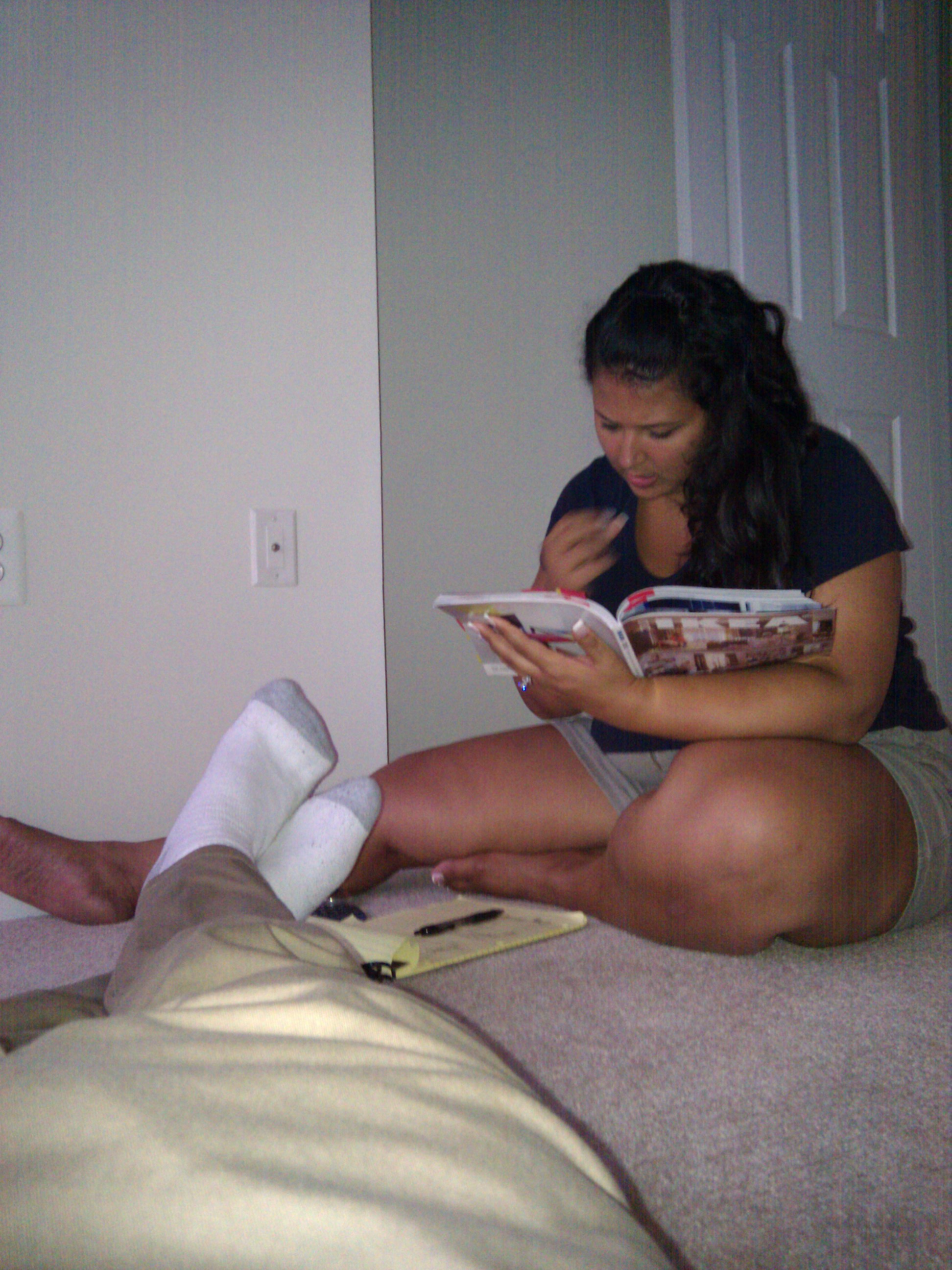 We also got a giant ottoman to stretch out and rest our feet on. I like this better than a hard coffee table.