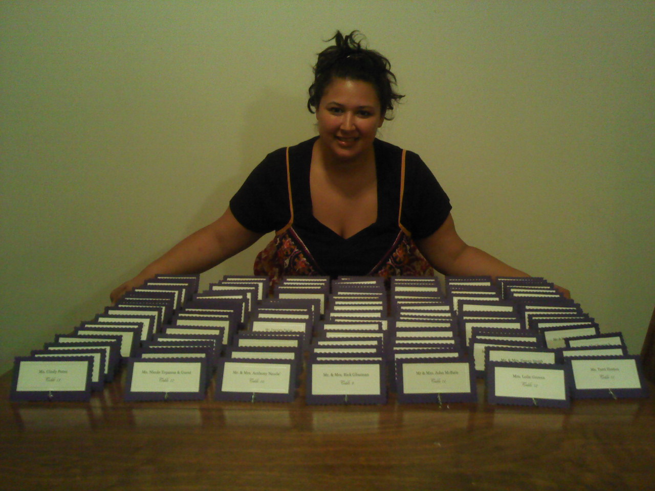1 ResponseLook at all of our escort cards lined up in rows! they turned out great …. goodluck finding ur name on saturday!