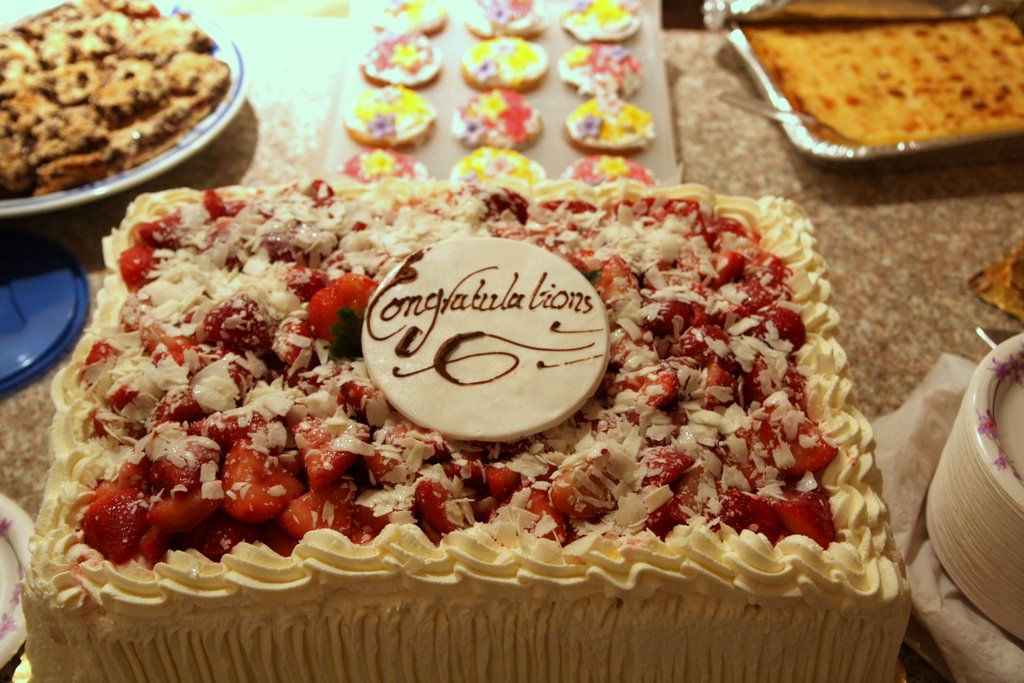 After most of our friends and family arrived we started the afternoon with lunch. There was Red Hot & Blue BBQ, hot dogs, purple potato salad and other homemade dishes. The bridesmaids got the featured cakes (a strawberry shortcake and a red velvet cake) from Desserts By Gerard and friends and family brought other yummy desserts. The bridesmaids announced to the guests to try to take the “Russell and Kristina Trivia Quiz” while eating lunch. I had some guests try to ask me questions off of the quiz and I almost unsuspectingly answered them. I caught myself however and avoided giving them the answers (how sly of them).